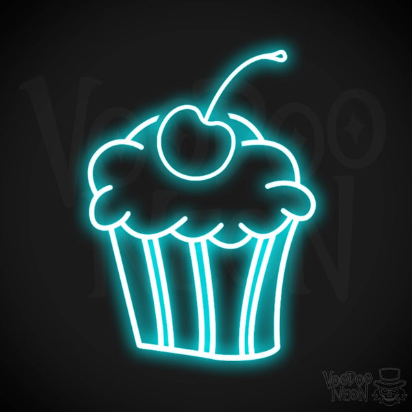 This neon sign features a delightful cupcake design with icing and a cherry.