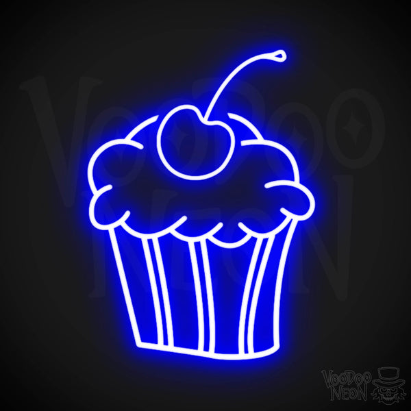 This neon sign features a delightful cupcake design with icing and a cherry.