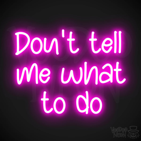 Illuminate your space with an assertive statement that embodies resilience and individuality. The "Don't Tell Me What To Do" neon sign is more than just a piece of decor; it's an expression of boldness and self-assured confidence. This superbly crafted LED neon light adds a dose of colorful personality to any room, transforming it into a vibrant haven of creativity and independence.