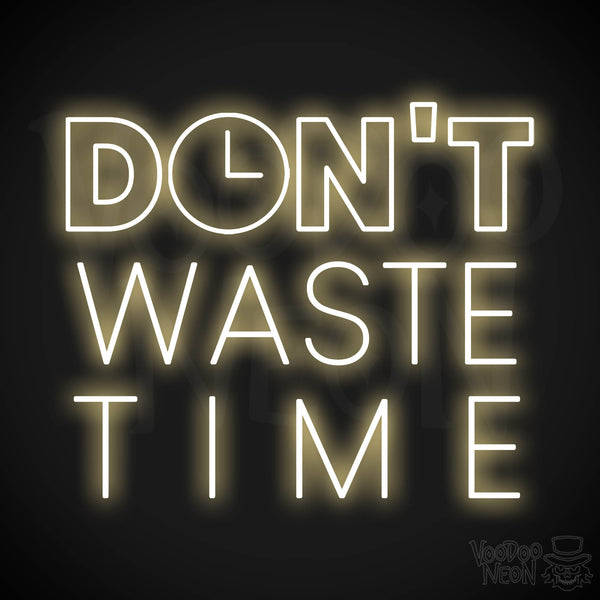 Voodoo Neon's Don't Waste Time Neon Sign is designed for those who appreciate the artistry in everyday objects and understand the power of words. It's perfect for innovative thinkers, go-getters, and anyone who values time as their most precious resource. So why wait? Add this vibrant LED sign to your decor today and let its bright lights serve as a constant reminder not to waste even a single moment.