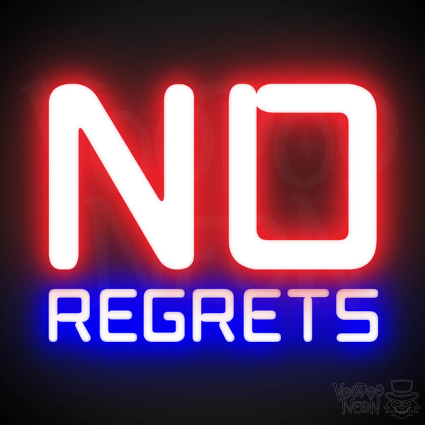 Need a neon no regrets sign for a home or office? You'll love the No Regrets Neon Sign - the perfect decor addition to any space that embodies the philosophy of living life without regrets. The No Regrets neon sign is not just any piece of wall art, it is a daily reminder to never regret the past and embrace the present. With it's sleek design and vibrant glow, No Regrets neon sign adds a touch of inspiration and positivity to any room. Whether it's for your home or office, this sign is sure to be a conversation starter and a source of motivation. Don't let regrets hold you back, let No Regrets be the light that guides you forward. Get yours today and start living life to the fullest. Get your own No Regrets Neon Sign!