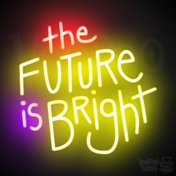 Are you wanting a The Future Is Bright sign for home, office, bedroom of school decor? Look no further than The Future Is Bright neon sign, the ultimate way to showcase your optimistic and ambitious spirit. The eye-catching LED lights in this neon wall art will become the focal point of any room, inspiring you to work hard and challenge yourself to reach new heights. Get ready to embrace the future with open arms. The stunningly bright and bold LED letters will remind you that no matter what obstacles come your way, the future is indeed bright. Perfect for your home office, dorm room, or even a trendy cafe, this sign is a conversation starter and a daily reminder to keep pushing forward. Don't wait to add The Future Is Bright neon sign to your space - your future self will thank you.
