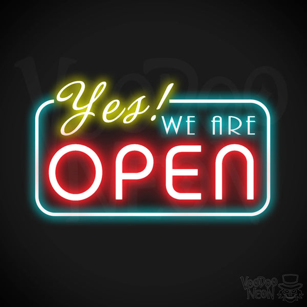 Looking for a Yes We Are Open sign for a business or store? This neon open sign is more than a sign, its an invitation to enter and browse and purchase in your store - the perfect invite and ice-breaker that just might encourage more people to come into your friendly store. A warm, inviting message that can't be missed with the Yes We Are Open neon sign! This slightly extended business sign is handmade with high quality materials and features a unique, shatter resistant design that is easy to install and use. With its low energy usage, this LED neon sign is the perfect way to let customers know you're open for business. Plus, it comes with a two year warranty and comes in a variety of colors and styles, so you can find the perfect fit for your business!